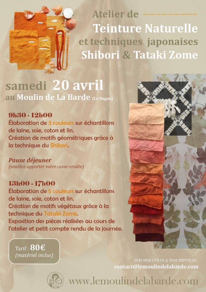 SAmedi 18 mai : atelier tatakizome au Moulin de la Barde – Le Bugue. Dordogne
